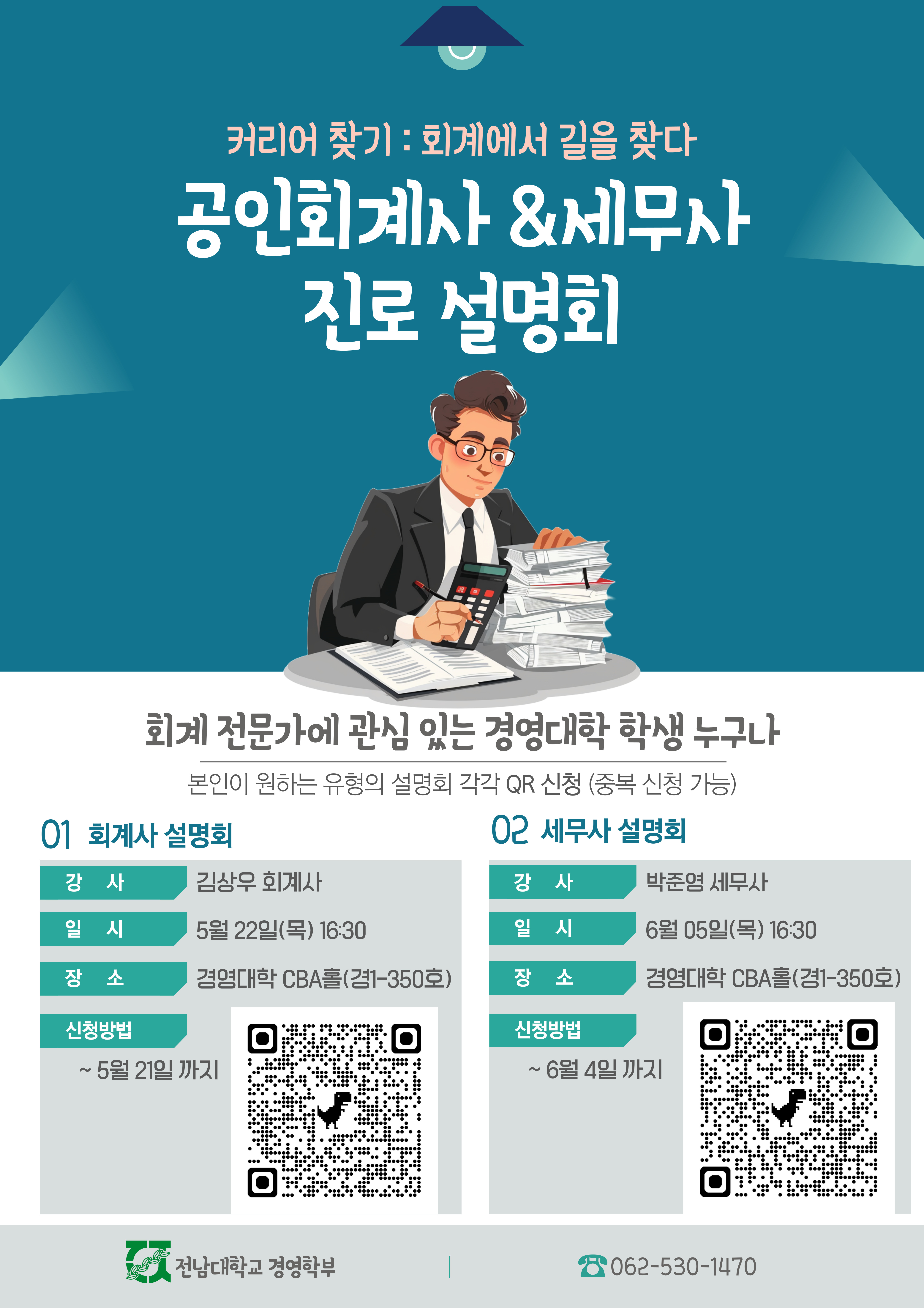 - 회계사 설명회 : 2025년 5월 22일(목) 16:30 / 경영대 CBA홀 (1호관 350호)